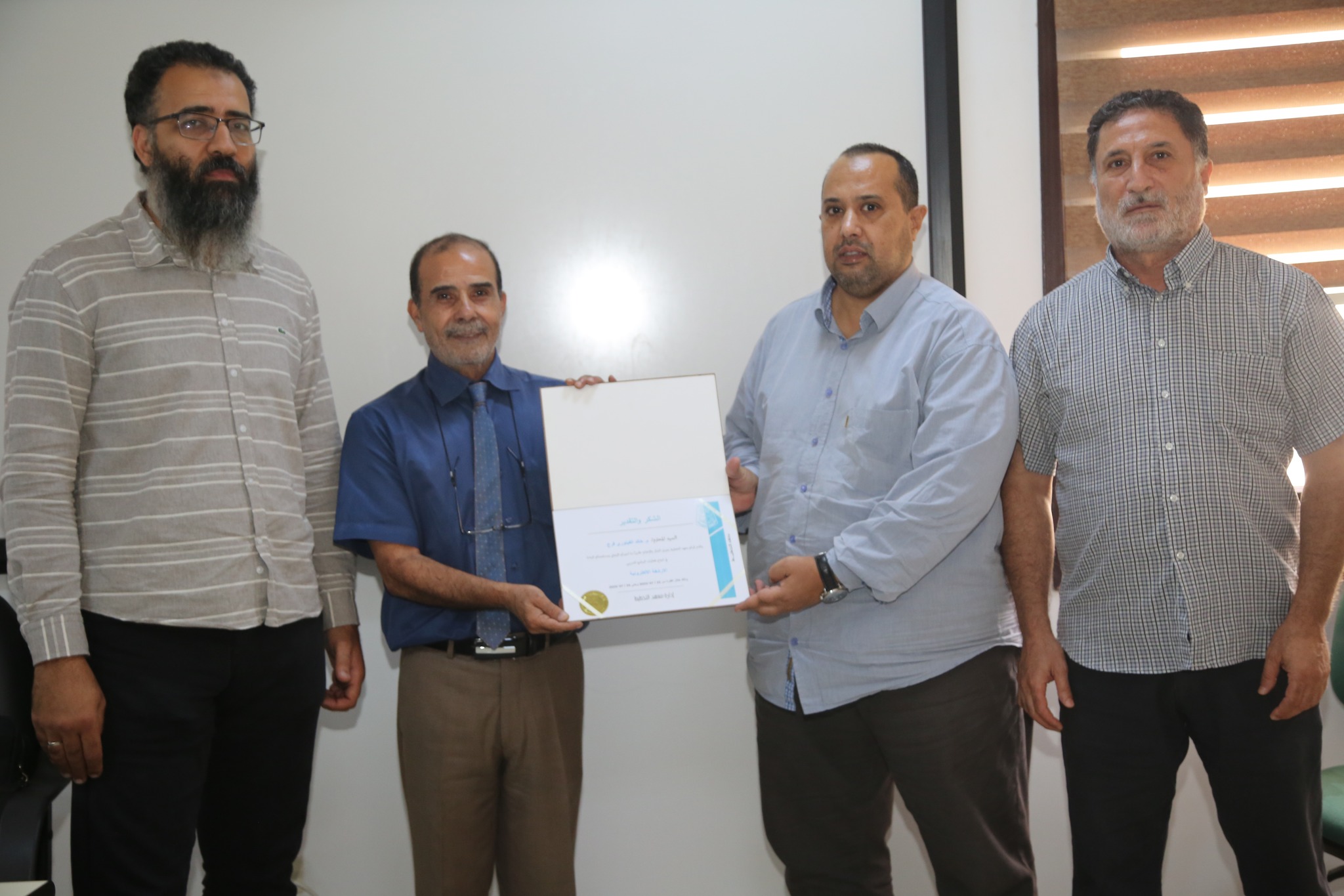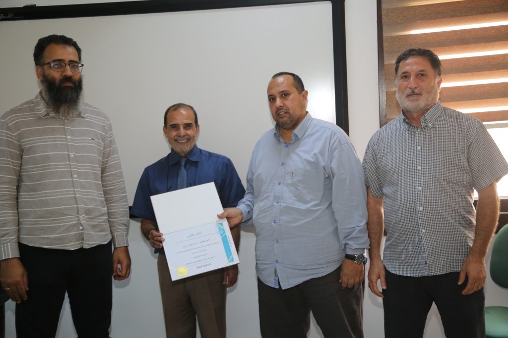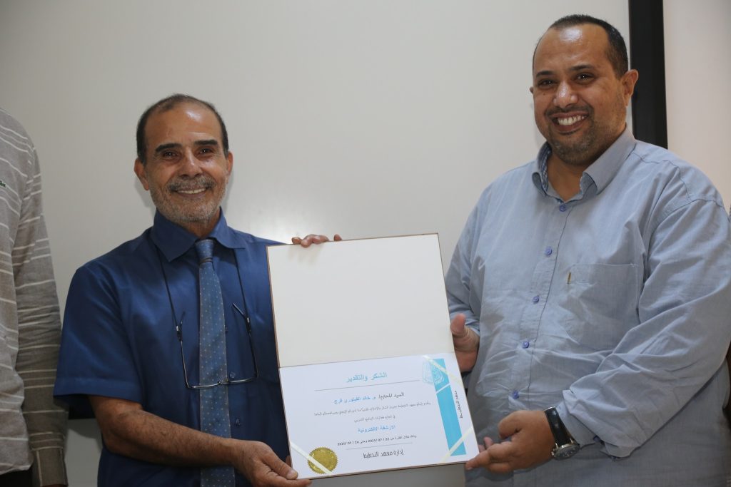 وفي ختام الدورة، قُدّمت شهادة تقدير وشكر للمهندس خالد الفيتوري، تقديرًا لجهوده في الإشراف على هذه الدورة التدريبية.