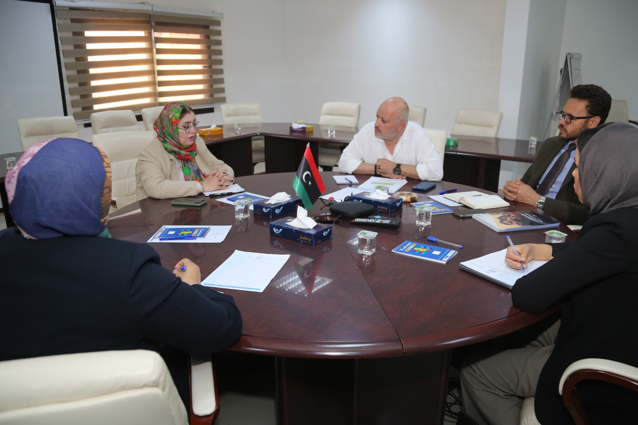 عُقد صباح اليوم الخميس اجتماع بمقر معهد التخطيط في طرابلس، ضمّ وزير الدولة لشؤون المرأة، السيدة حورية طرمال ، و السيد تميم النعاس مدير مكتب التعاون الفني بوزارة التخطيط، وذلك في إطار التنسيق المشترك بين الجانبين لوضع الأسس الخاصة ببناء السياسات والاستراتيجيات المتعلقة بشؤون المرأة في ليبيا.