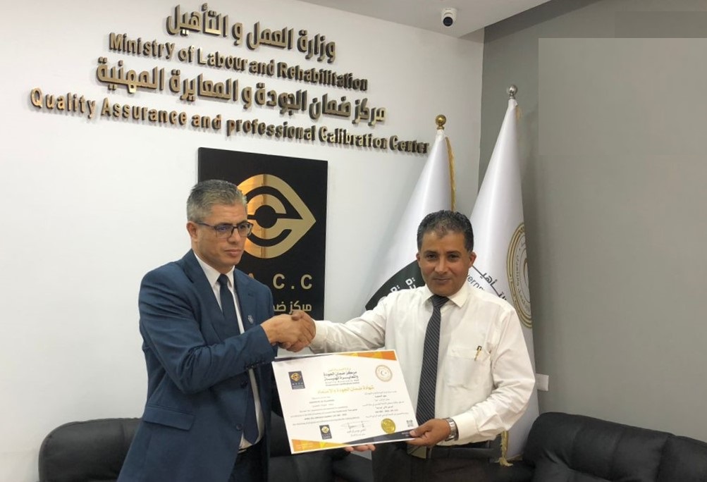 وقام مدير عام المركز، السيد ” فتحي الحباسي ” ، بتسليم شهادة الاعتماد إلى مدير عام المعهد، الدكتور ” مصطفى عطية الأرقَط “.