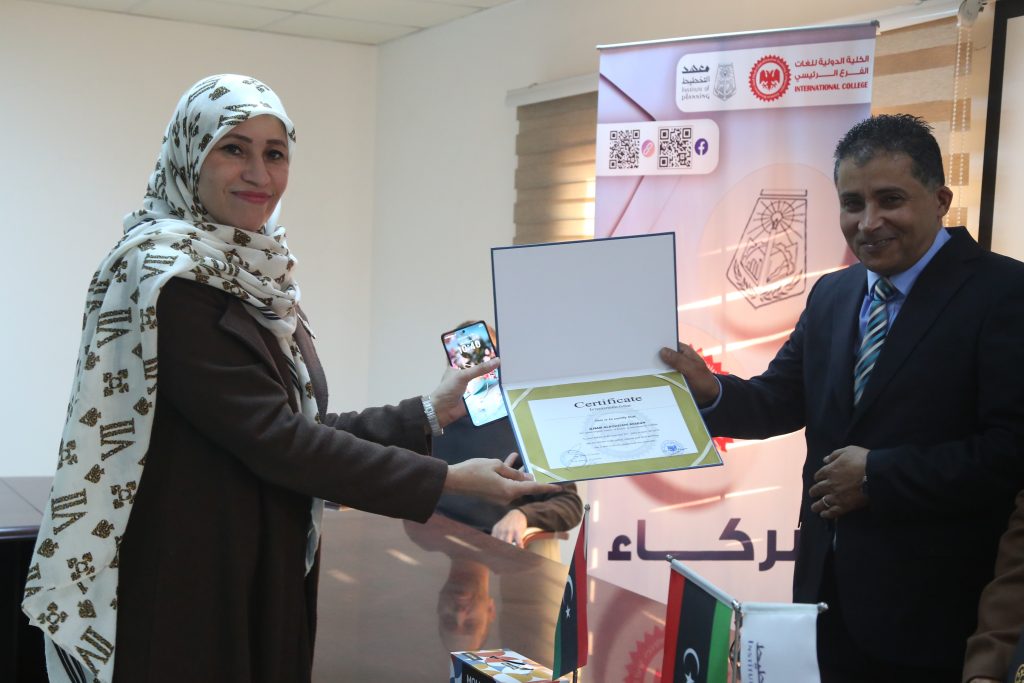 اختُتمت بمقر معهد التخطيط الدورة التدريبية التي استهدفت مجموعة من موظفي المعهد، وذلك بحضور مدير عام المعهد الدكتور مصطفى الأرقط، ومدير إدارة التدريب والتعاون الدولي بالكلية الدولية للغات – الفرع الرئيسي، الدكتور عبد الناصر مختار. وقد أشرفت على الدورة الأستاذة إلهام البوعيشي، واستمرت فعالياتها لمدة 40 يومًا متواصلاً.