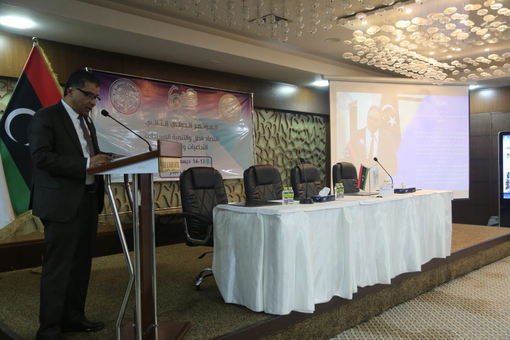 ثم ألقى وزير الاقتصاد كلمة أثنى فيها على الجهود المبذولة من قبل القائمين على تنظيم هذا المؤتمر، حاثًّا الجميع على بذل المزيد من الجهود لخدمة الاقتصاد الليبي والمساهمة في إيجاد الحلول العلمية والعملية للتحديات القائمة.