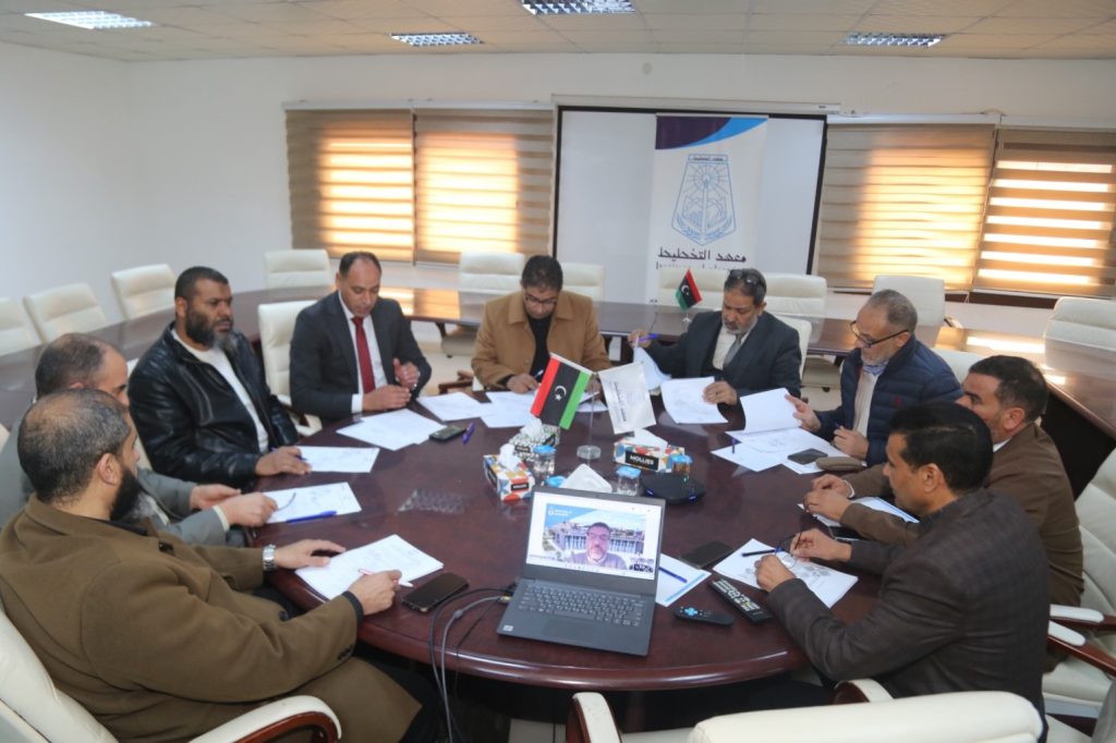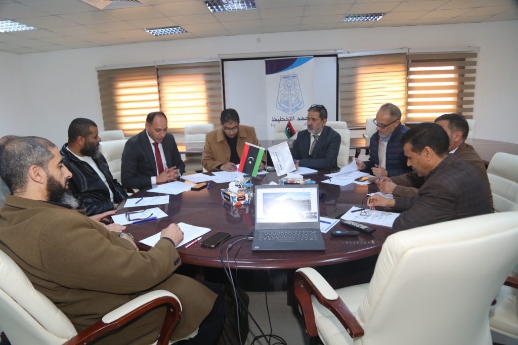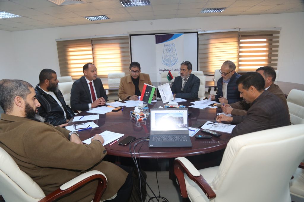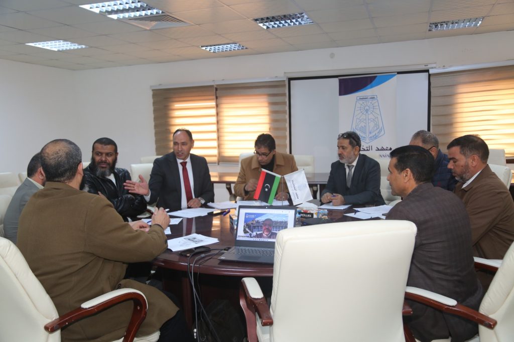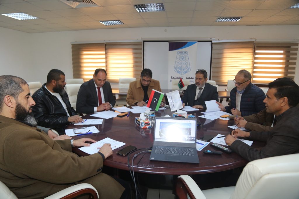 بحضور الدكتور مصطفى الأرقَط، المدير العام للمعهد، الدكتور جلال خراز نائب مدير مشروع مساندة- المؤسسة الالمانية للتعاون الدولي الدكتور محمد بهلول المصراتي رئيس قسم الاحصاء كلية العلوم جامعة طرابلس الدكتور :عماد اللقماطي : مدير عام للمعهد الليبي للماليه العامة المكلف و عضو هيئة تدريس جامعة طرابلس.الدكتور :طارق صالح عبدو :رئيس قسم الاتصالات بالمعهد العالي للتقنيات الهندسية طرابلس .