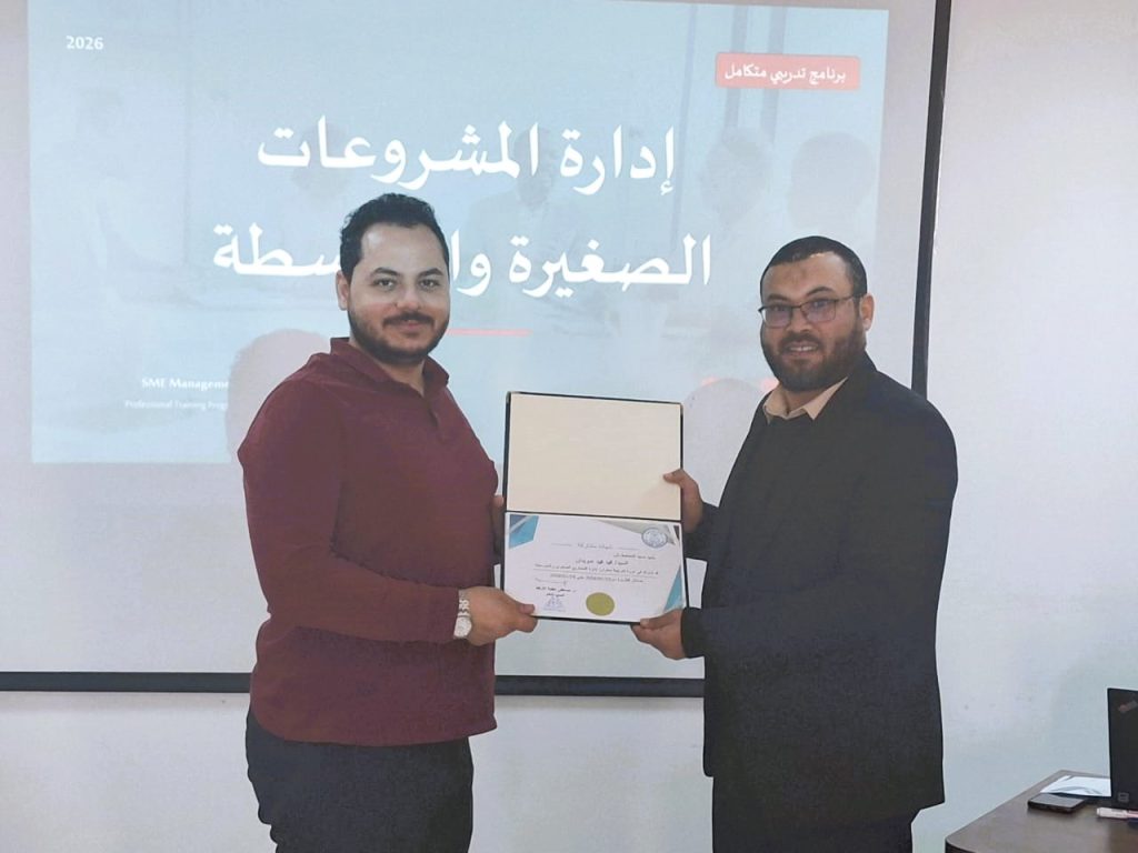 وفي ختام الدورة، تم تسليم شهادات التقدير والمشاركة للمتدربين، تقديرًا لالتزامهم ومشاركتهم الفعّالة، كما تم تكريم المدرب تقديرًا لجهوده في إنجاح البرنامج التدريبي.