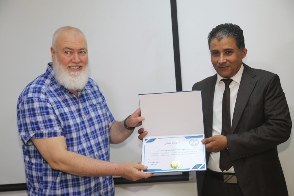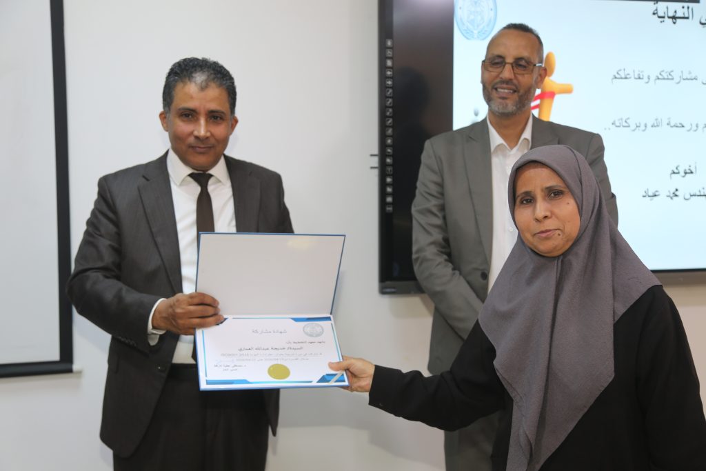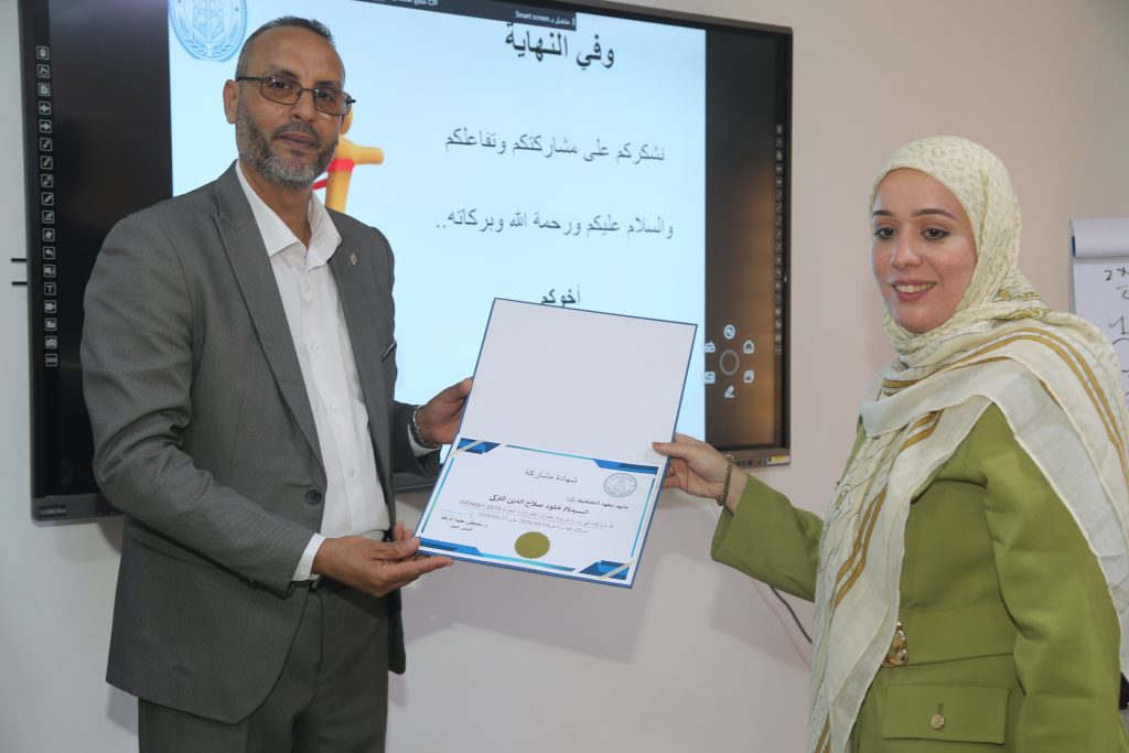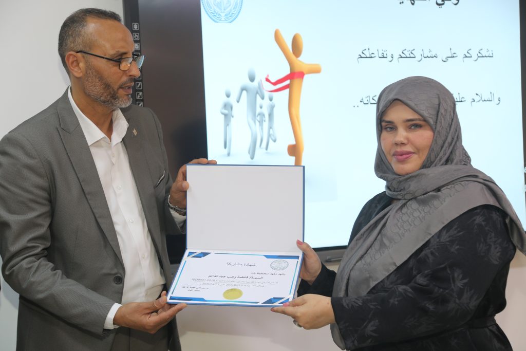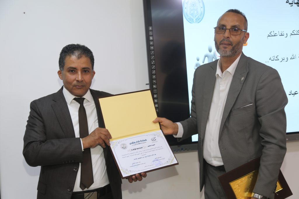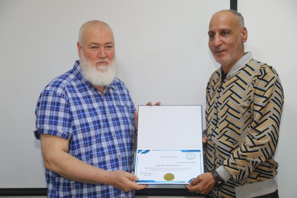 وشهد ختام الدورة مراسم تكريم، حيث قدّم مكتب مراقبة التعليم بتاجوراء شهادات شكر وتقدير إلى كل من مدير معهد التخطيط الدكتور مصطفى الأرقط، والمهندس محمد عياد، وذلك تقديرًا لجهودهما في تنظيم وتنفيذ البرنامج التدريبي.